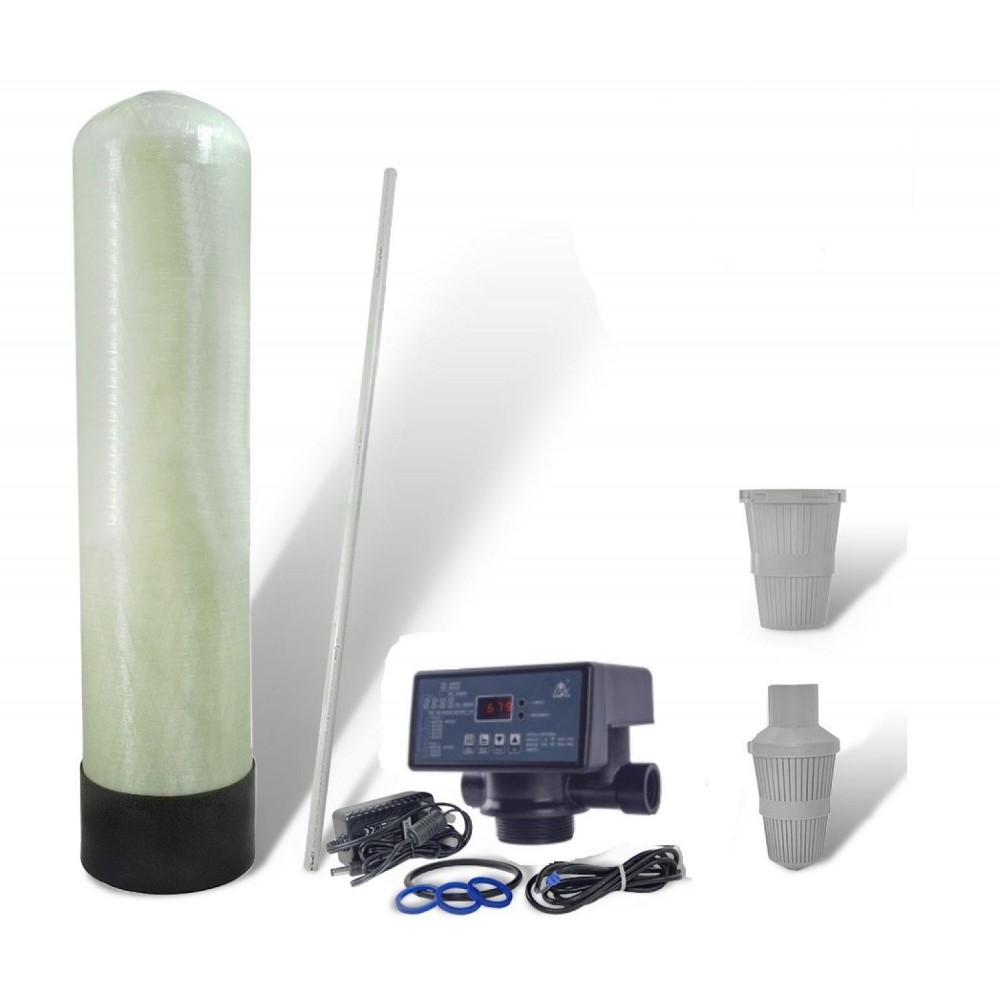 Описание: установка состоит из корпуса фильтра, выполненного из стеклопластика внутри ламинированного полиэтиленом, автоматического клапана управления, фильтрующей среды, поддерживающего слоя гравия, дренажно-распределительной системы, бака для приготовления регенерационного раствора.