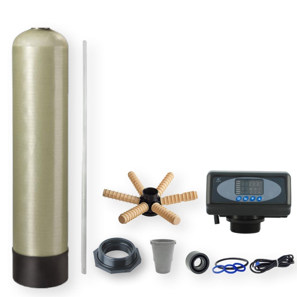 Описание: установка состоит из корпуса фильтра, выполненного из стеклопластика внутри ламинированного полиэтиленом, автоматического клапана управления, фильтрующей среды, поддерживающего слоя гравия, дренажно-распределительной системы, бака для приготовления регенерационного раствора.