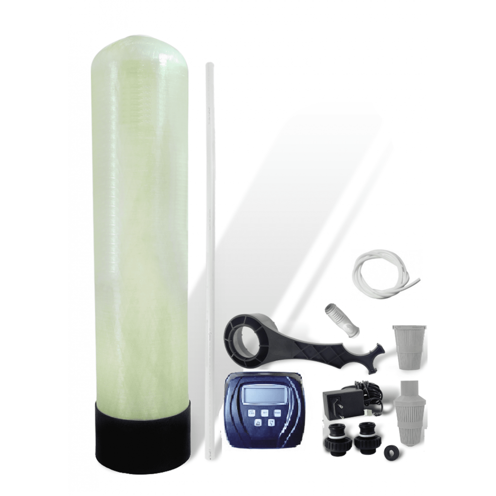 Описание: установка состоит из корпуса фильтра, выполненного из стеклопластика внутри ламинированного полиэтиленом, автоматического клапана управления, фильтрующей среды, поддерживающего слоя гравия, дренажно-распределительной системы, бака для приготовления регенерационного раствора, воздушного эжектора, предназначенного для подсоса воздуха внутрь корпуса фильтра и реагентной трубки.